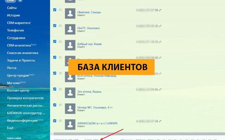 Клиентская база 3 700 контактов, где более 600 контрагентов.