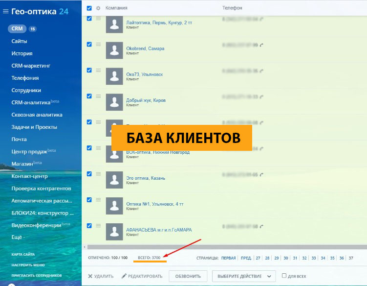 Клиентская база 3 700 контактов, где более 600 контрагентов.
