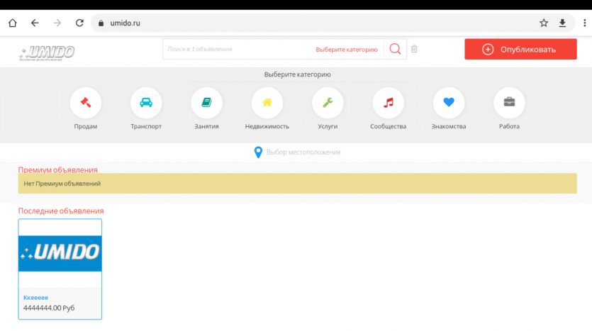 Продам готовый сайт доски объявлений.umido.ru