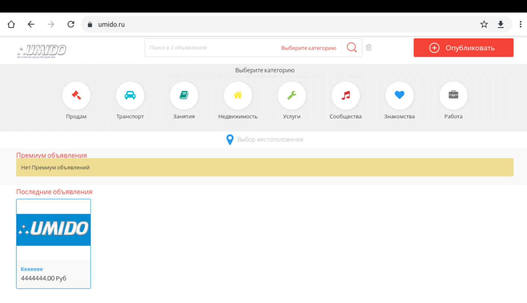 Продам готовый сайт доски объявлений.umido.ru