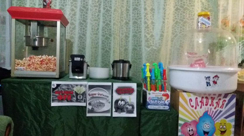 1. Аппарат для изготовления сахарной ваты + ловитель + купол + тумба под аппарат (вкусовые добавки, палочки, упаковка для ваты – мешки)