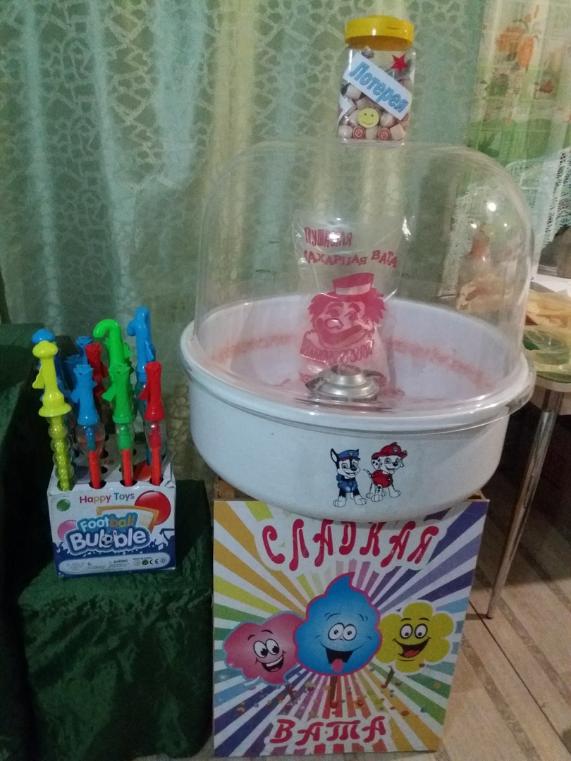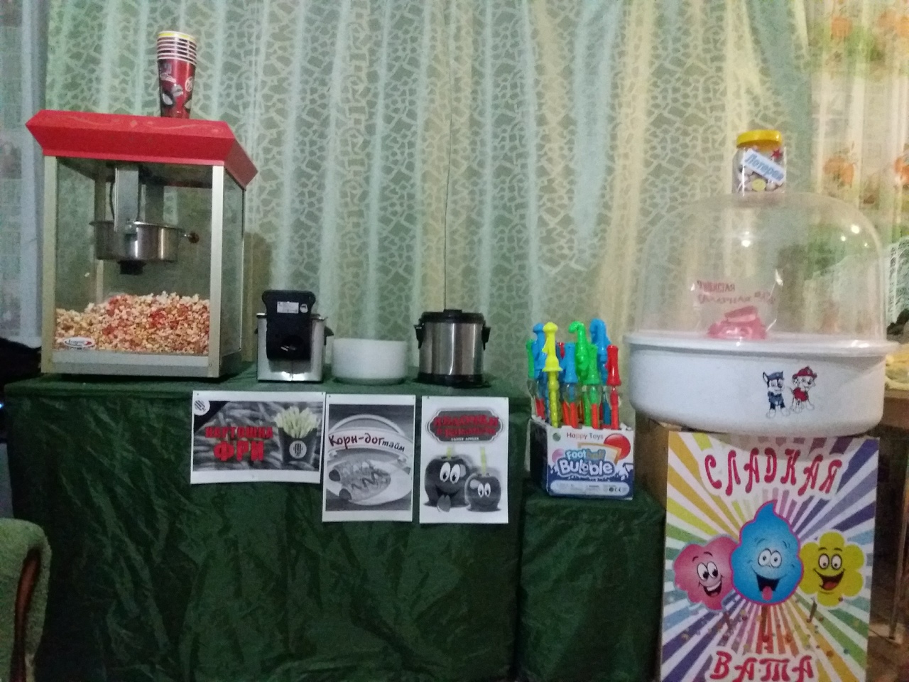 1. Аппарат для изготовления сахарной ваты + ловитель + купол + тумба под аппарат (вкусовые добавки, палочки, упаковка для ваты – мешки)