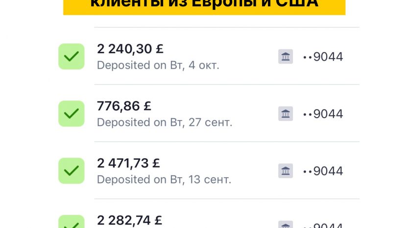 2. Скрины поступлений на банки