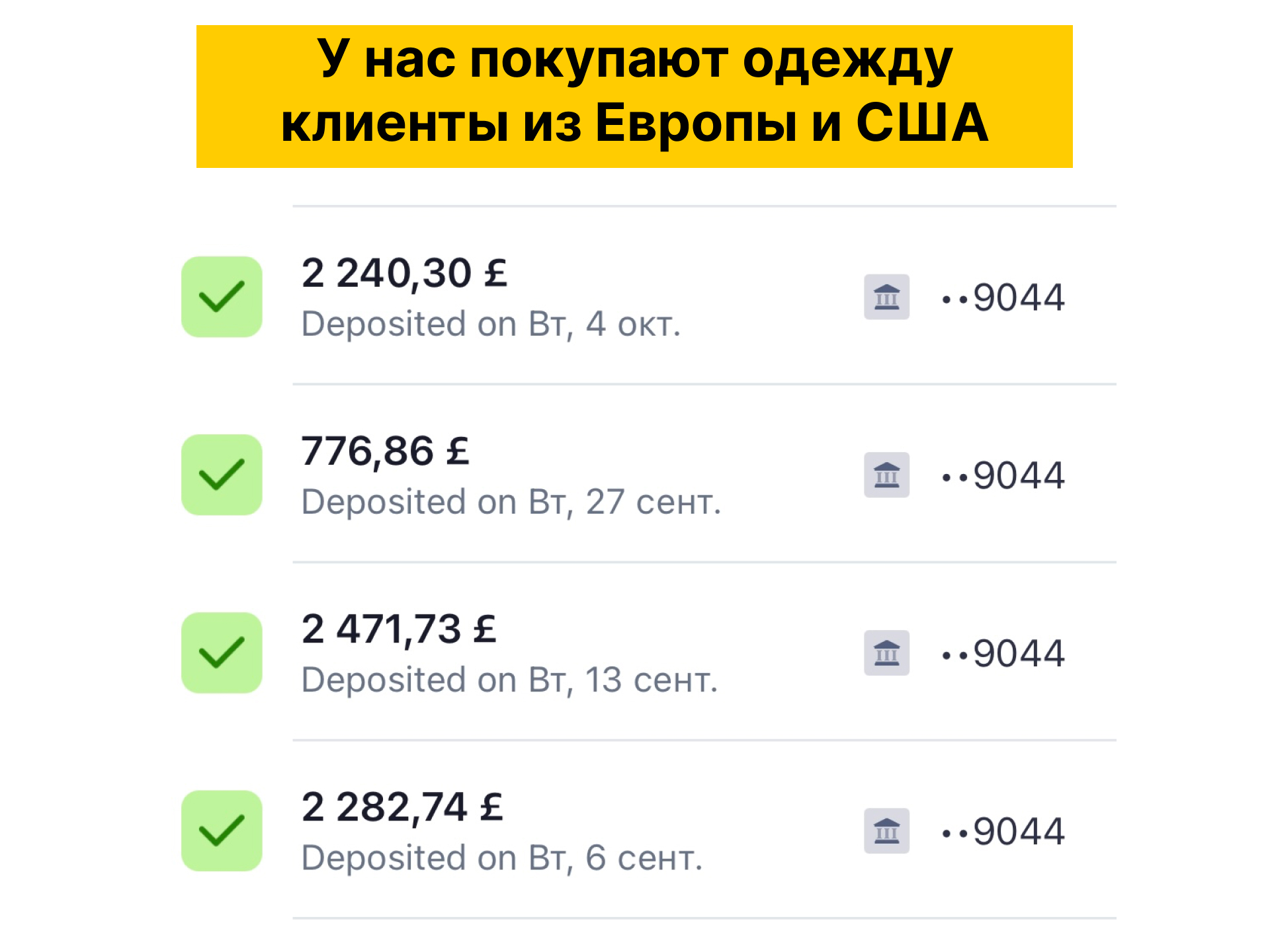 2. Скрины поступлений на банки