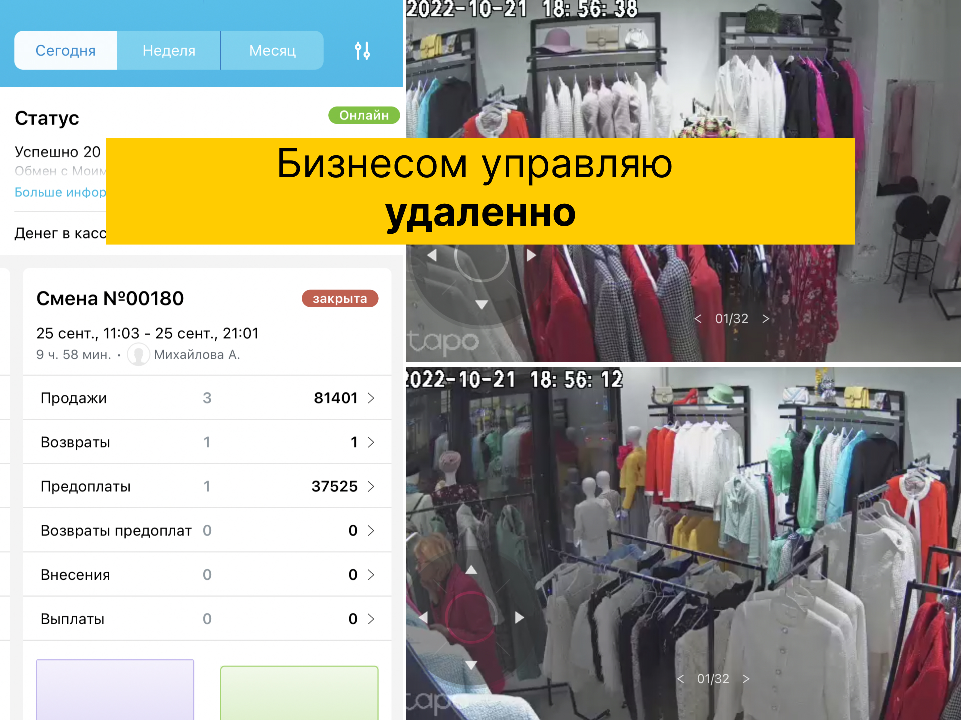 Веду удаленно (камеры в бутике и на производстве)