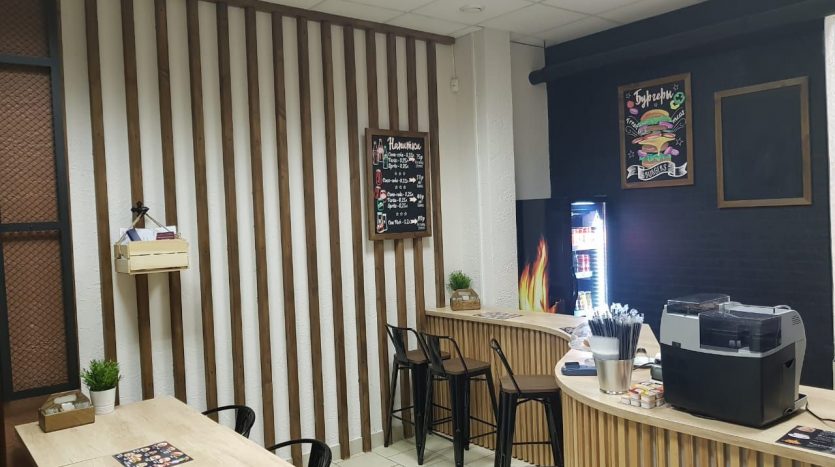 Новое оборудование для приготовления бургеров, выпекания булочек и всех составляющих, кофейный автомат Джофемар G 23 (на гарантии, полностью автоматическое приготовление напитков),вытяжка с мотором, касса с пин-падом и фискальным накопителем, в зале есть кондиционер и вытяжка с мотором.