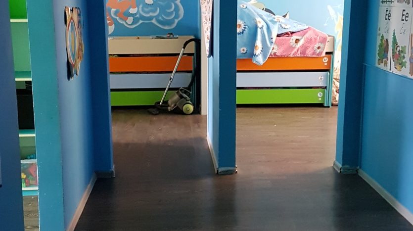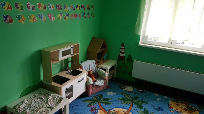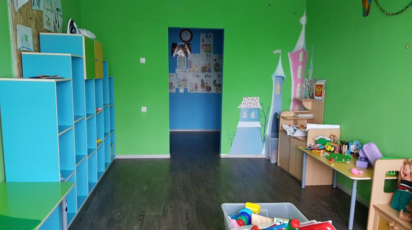Внутри все полностью обустроено, сделан ремонт под детский сад, открыта НКО, наняты сотрудники, ходят дети. Для получения лицензии на образовательную деятельность осталось построить детскую площадку, после чего сад начнет спонсировать государство . Есть договоренность со школой по поводу земли для площадки.