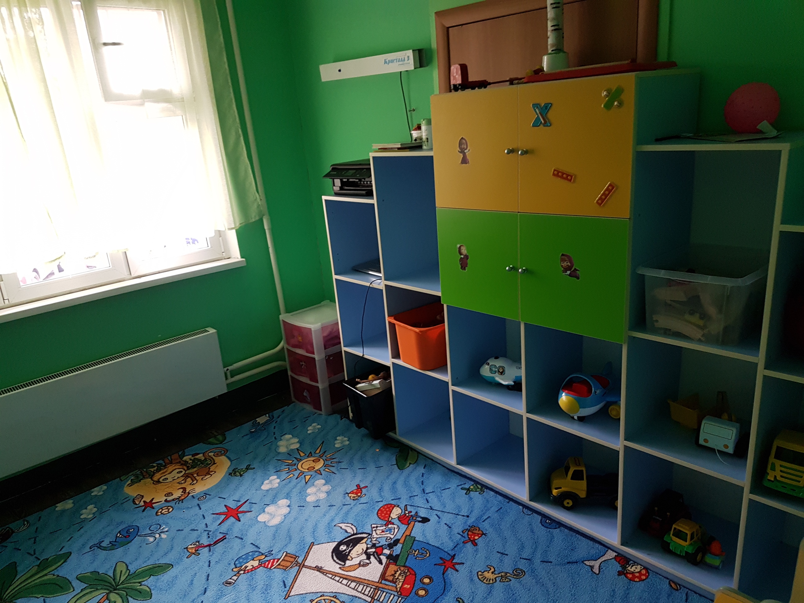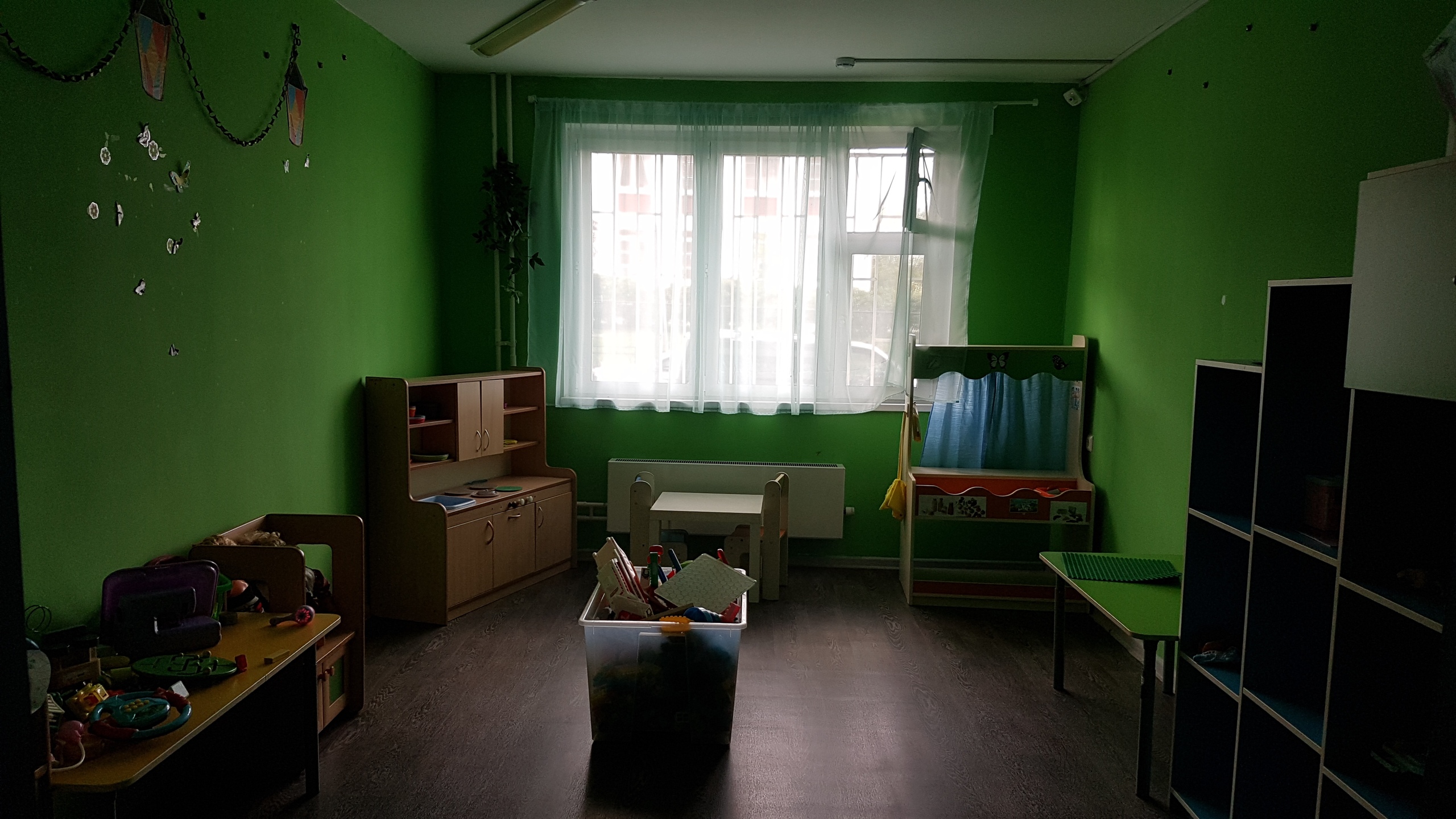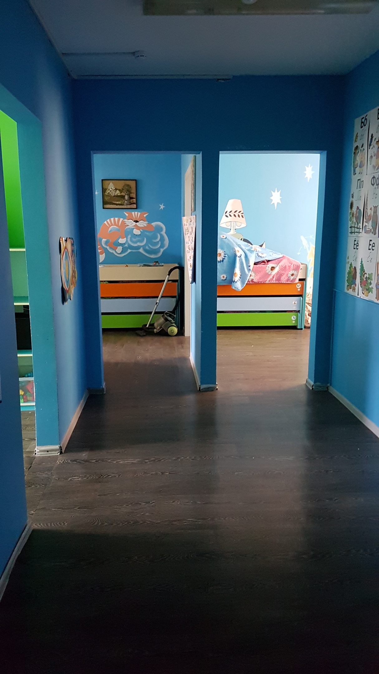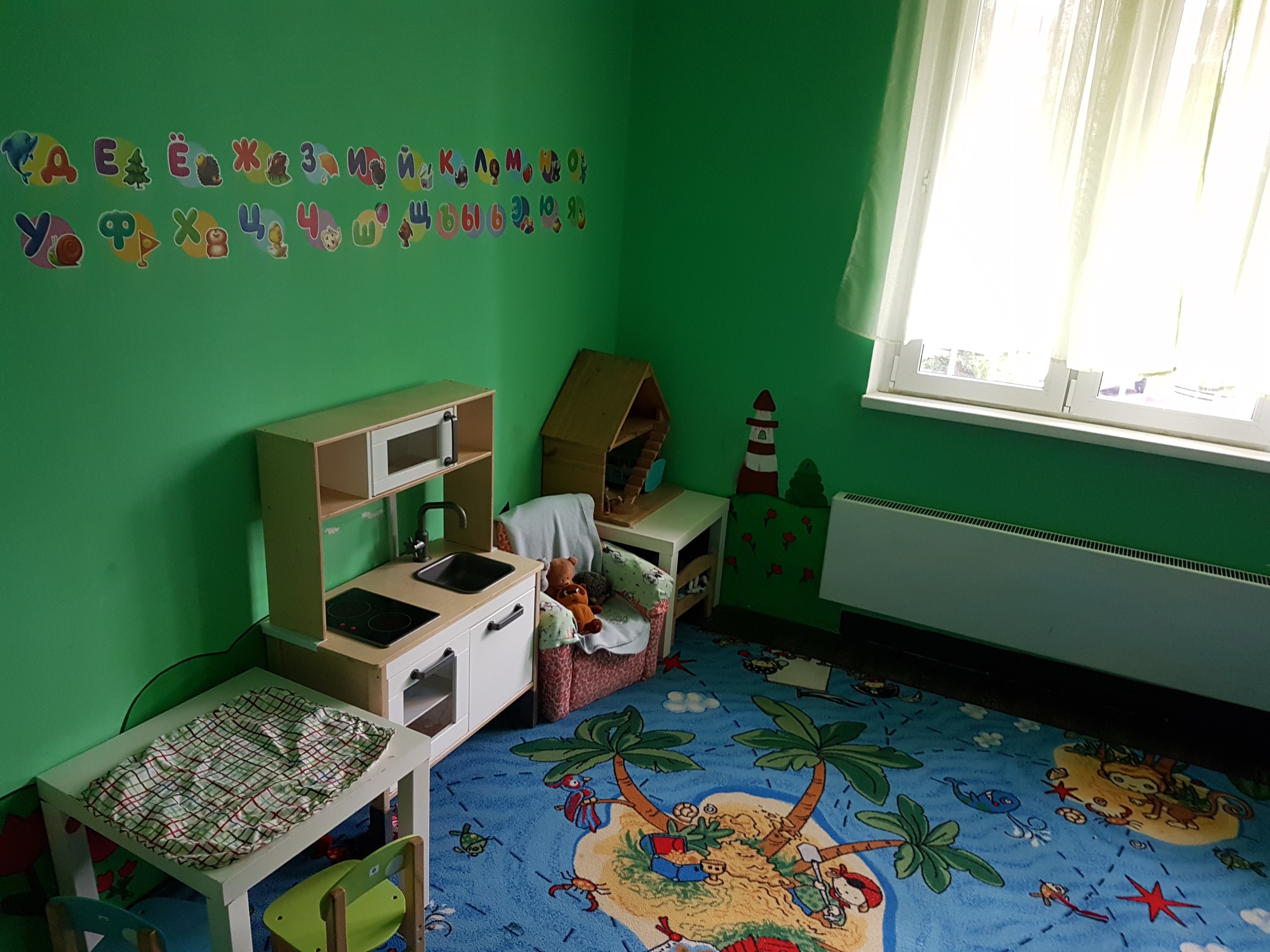 Внутри все полностью обустроено, сделан ремонт под детский сад, открыта НКО, наняты сотрудники, ходят дети. Для получения лицензии на образовательную деятельность осталось построить детскую площадку, после чего сад начнет спонсировать государство . Есть договоренность со школой по поводу земли для площадки.