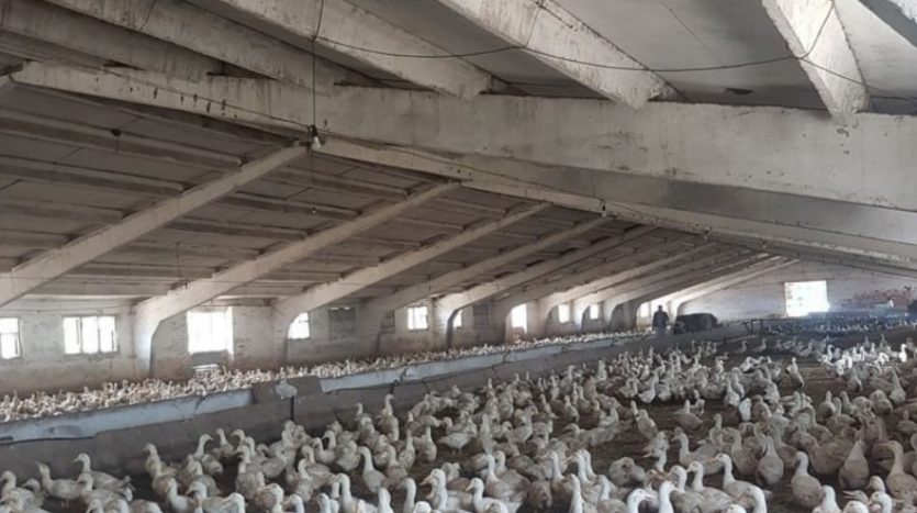 2) 1 этажное здание, площадью 834, 1 кв. м. стены кирпич, крыша поликорбанат. В здании фермы имеется большая баня, построенная в 2015 г. Имеется 4 аппарата для перощипания. Около 500 кв. м здания оборудовано системой теплый пол. Также в здании фермы есть инкубационная комната на 4000 гусиных яиц (см. фото)