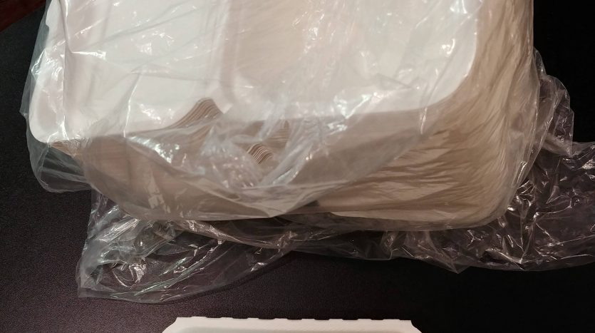 9. Небольшой запас био одноразовой посуды из сахарного тростника и кукуруз. крахмала: контейнеры, супницы и салатники