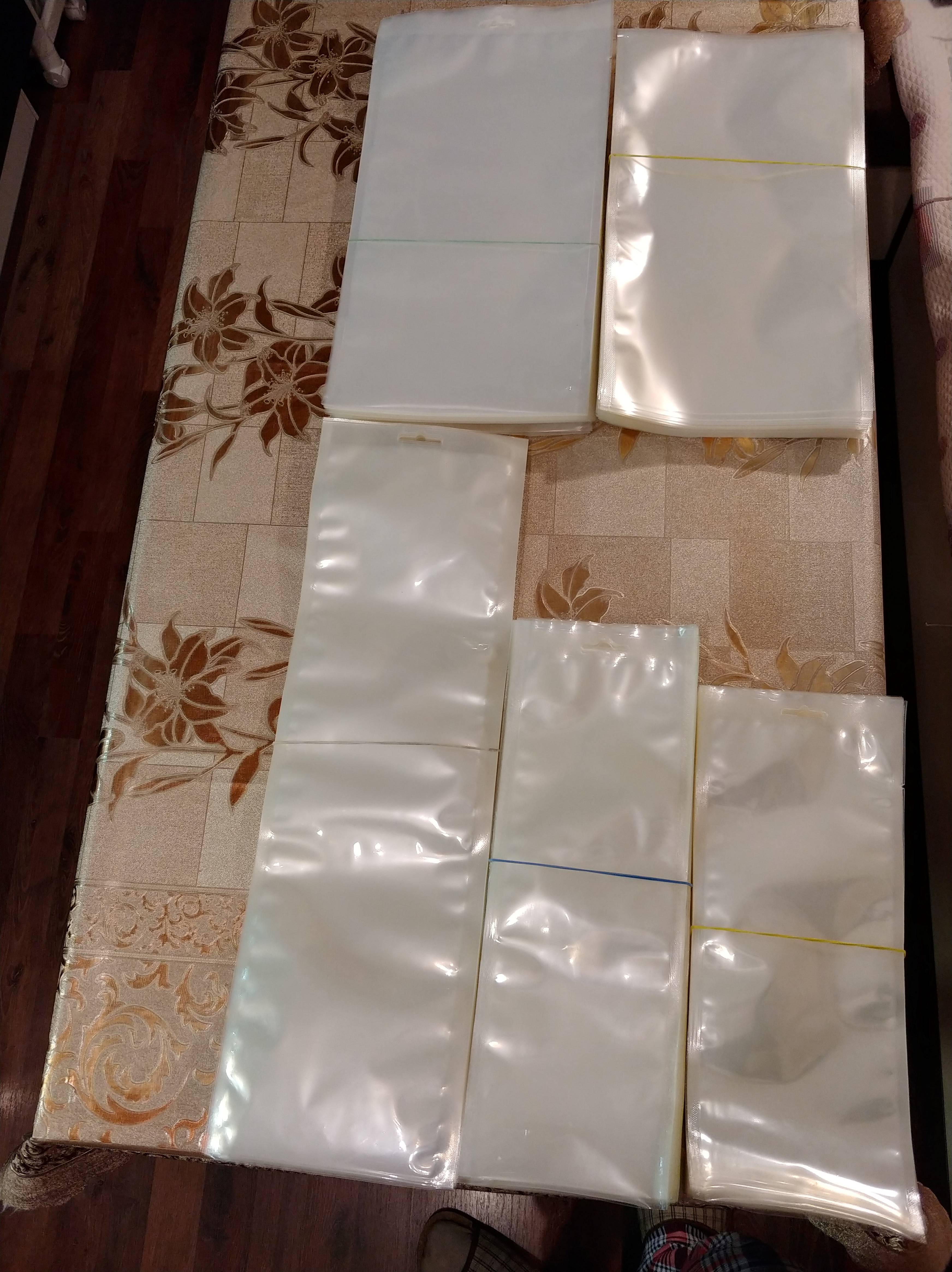 8. Большой запас разных пищевых вакуумных пакетов. 5 размеров. Очень прочные. Толщина 100 мкм. Россия. На сумму 100 тыс.руб.