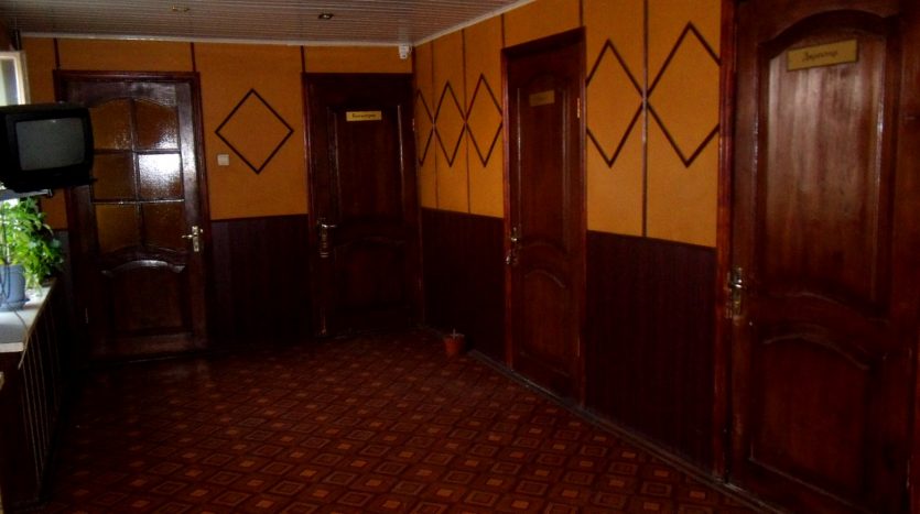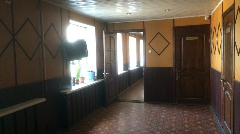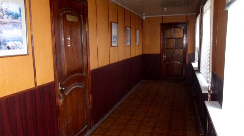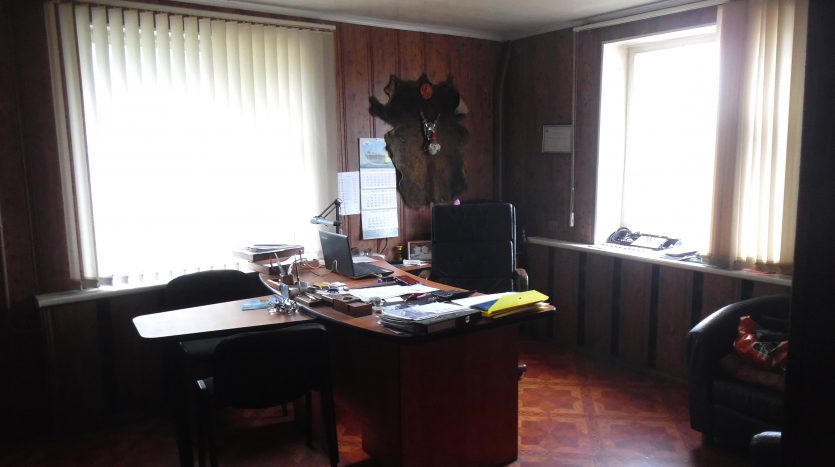 На 1-ом этаже расположены – гаражи, мастерская, столовая, сауна, с/узлы. 2-ой этаж – офисы (5 кабинетов с мебелью). 3-й этаж – свободная планировка.