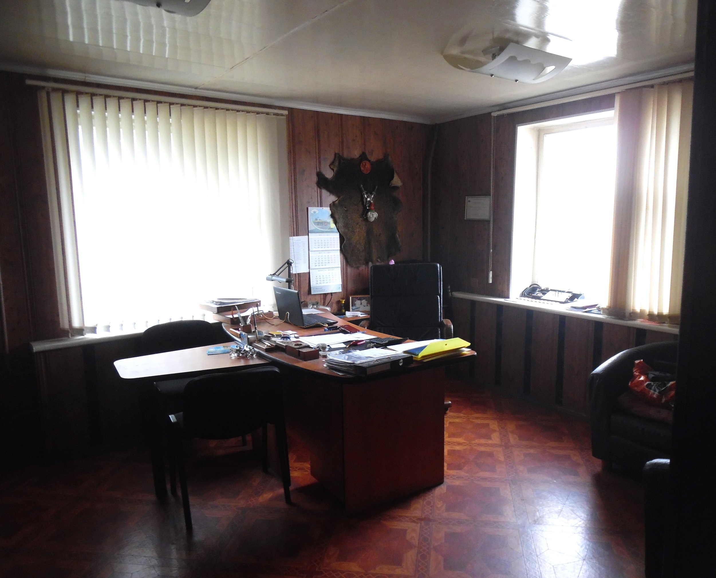 На 1-ом этаже расположены – гаражи, мастерская, столовая, сауна, с/узлы. 2-ой этаж – офисы (5 кабинетов с мебелью). 3-й этаж – свободная планировка.