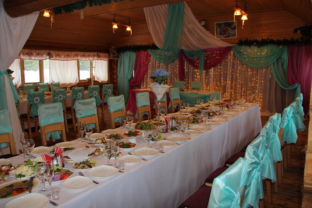Территория ухожена. Помещения оборудованы в полном объёме. На базе отдыха проводятся корпоративные мероприятия, свадьбы и банкеты. Комплекс выполнен в русском стиле из бревна ручной обработки. Период работы — круглогодичный. Организованные коммуникации: электричество, водоснабжение, теплоснабжение, канализация.