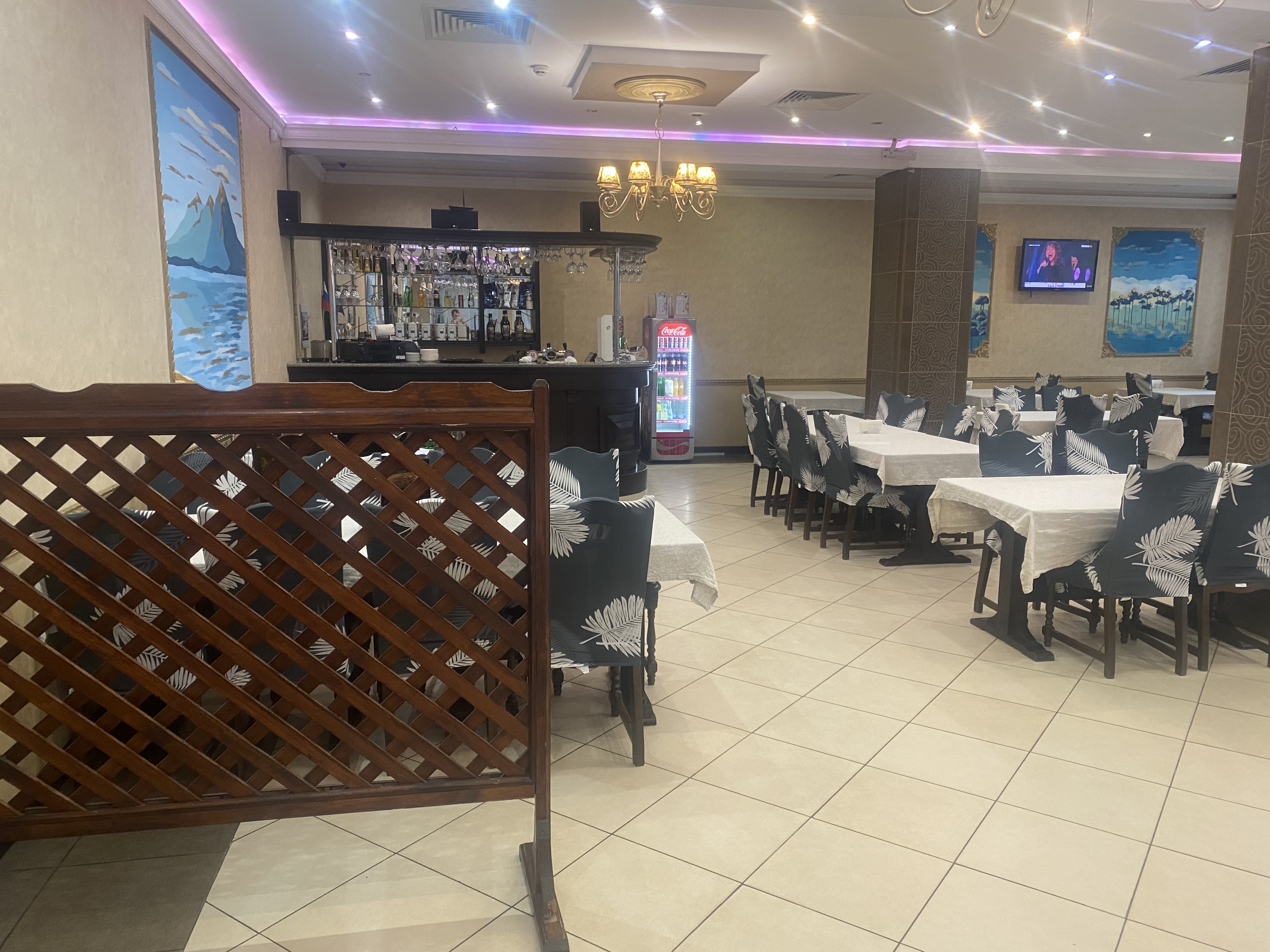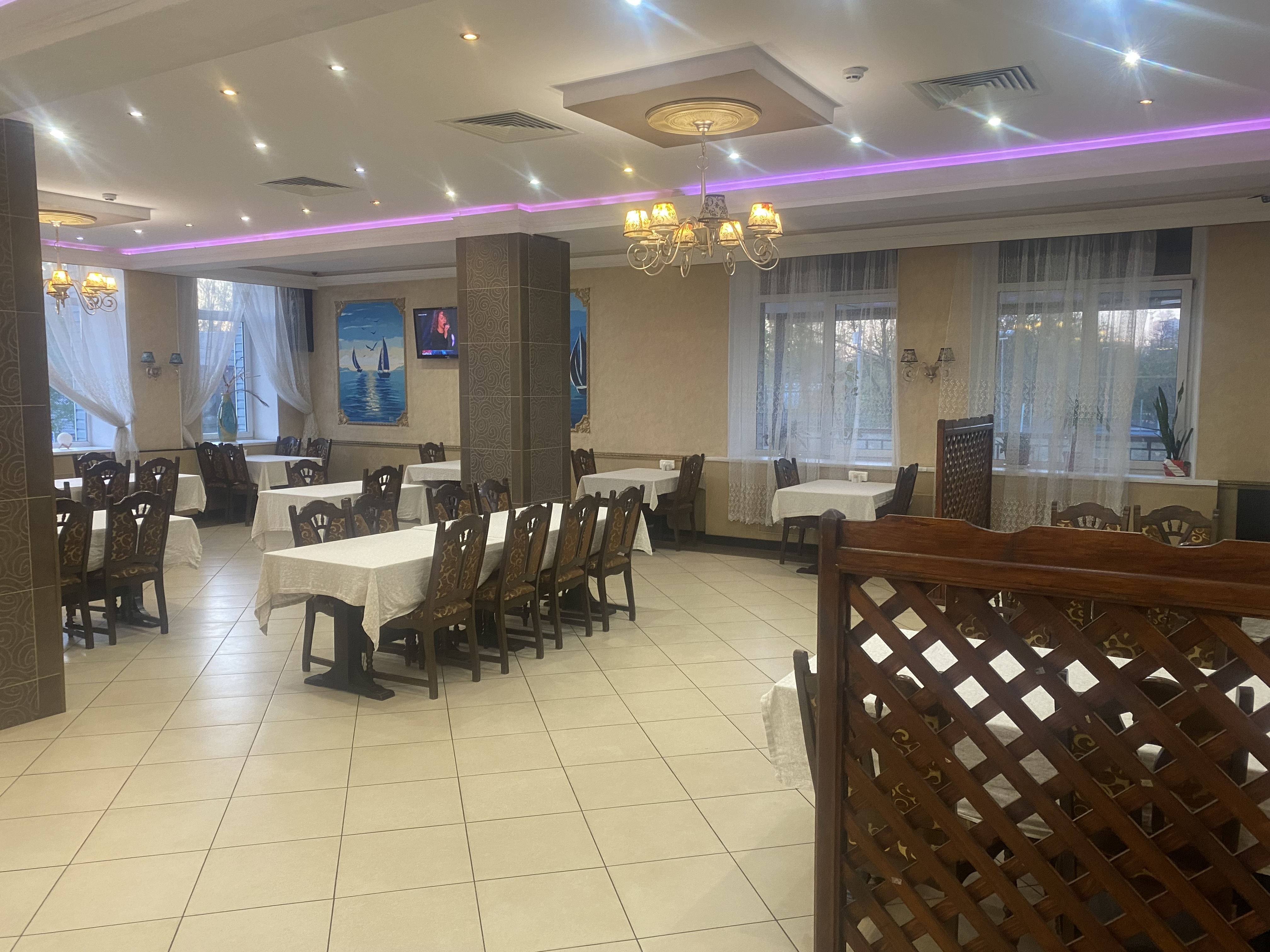 На территории ресторана имеется обеденный зал, гардероб, по две кабинки в туалетных комнатах для мужчин и женщин, помещение для мойки посуды, большая кухня с мангалом, кабинет руководства, установлено видеонаблюдение, а так же санузел для персонала с душевой кабиной.