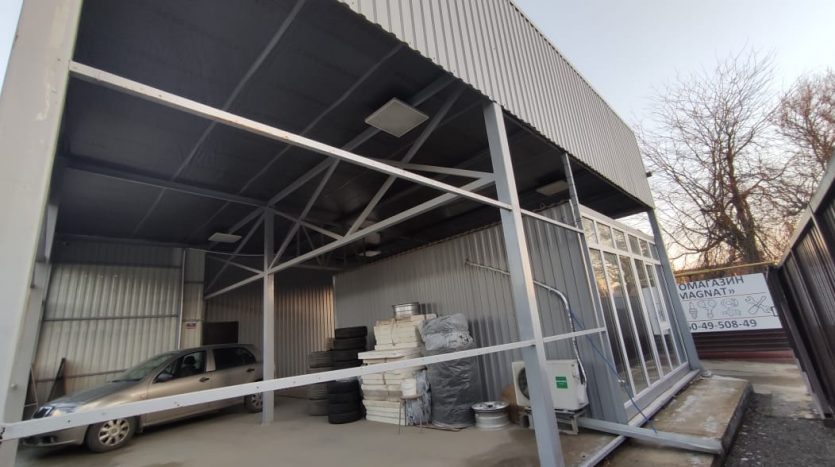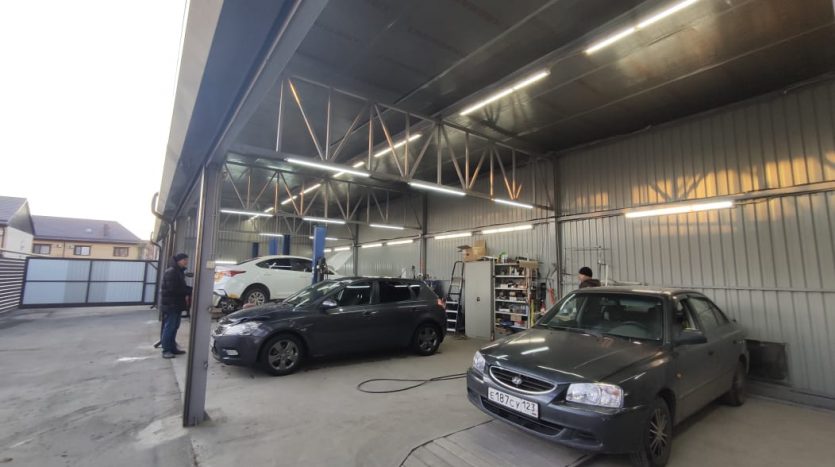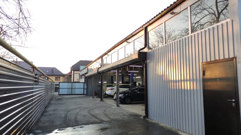 подъемниками и осмотровой ямой, четырьмя воротами с автоматическими роллетами; утепленное помещение автомагазина с высокой степенью остекления, площадью