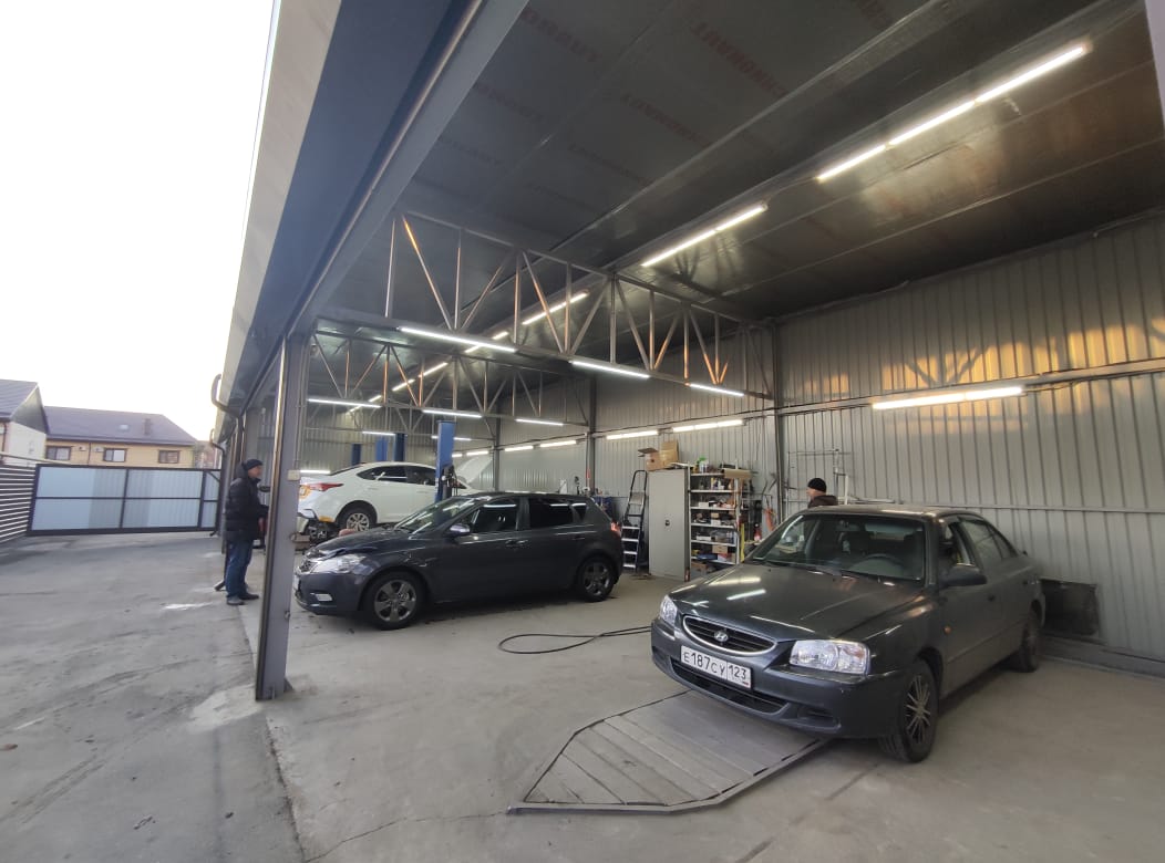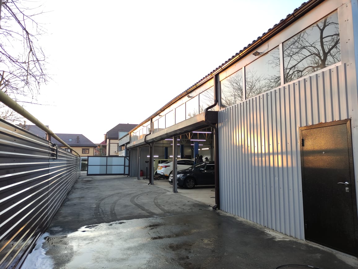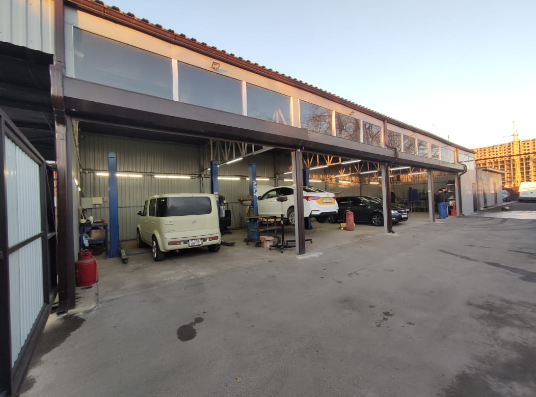 подъемниками и осмотровой ямой, четырьмя воротами с автоматическими роллетами; утепленное помещение автомагазина с высокой степенью остекления, площадью