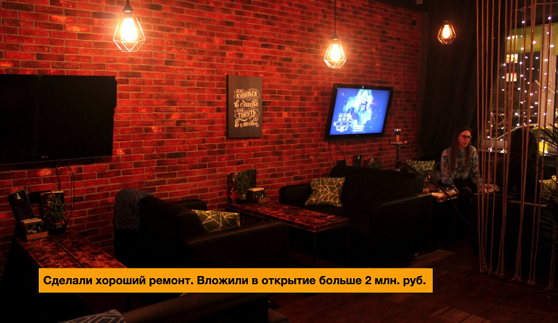 ВАЖНО: оформились как кальянный клуб (!) — спокойно работаем после 23 часов вечера, без вопросов от контролирующих инстанций.