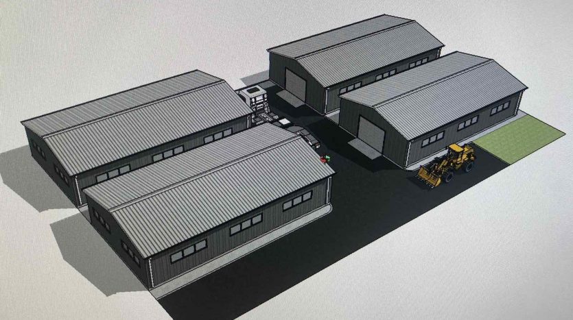 Имеем архитектурный проект (рис.2), под строительство на участке четырех отдельно стоящих зданий (реально есть возможность вместить больше метров).
