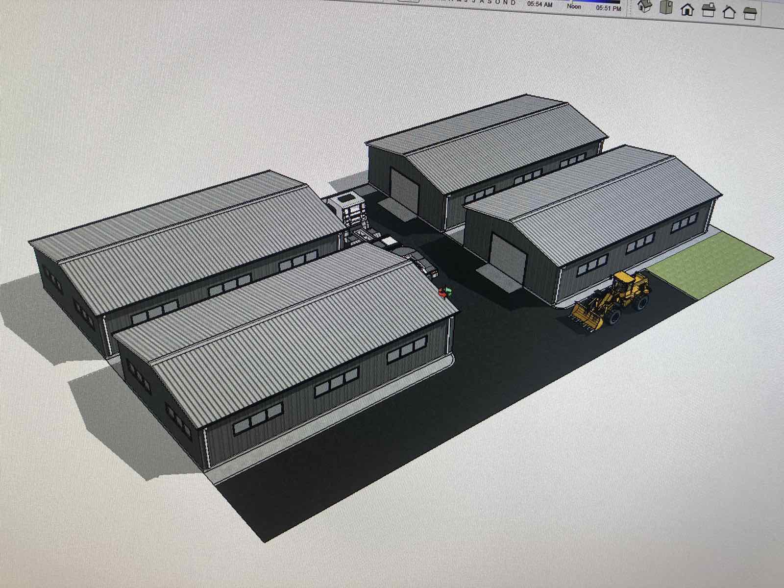 Имеем архитектурный проект (рис.2), под строительство на участке четырех отдельно стоящих зданий (реально есть возможность вместить больше метров).