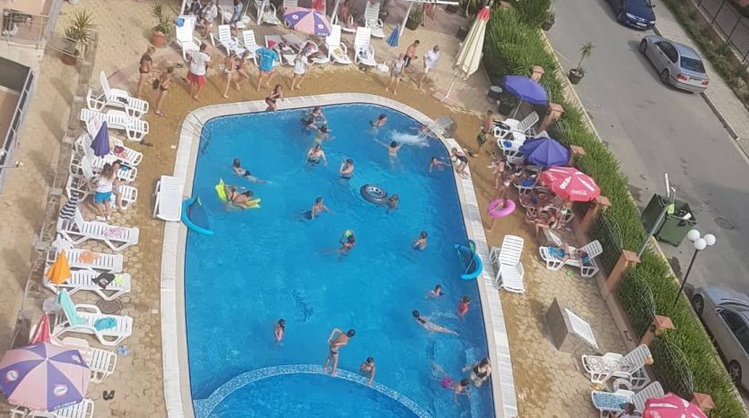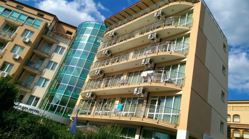 Hello, offer for sale a hotel with a swimming pool, gym and sports hall in the western part of the largest and most popular sea resort in Bulgaria — Sunny Beach.