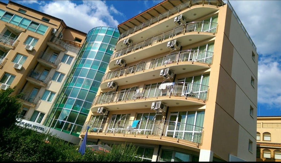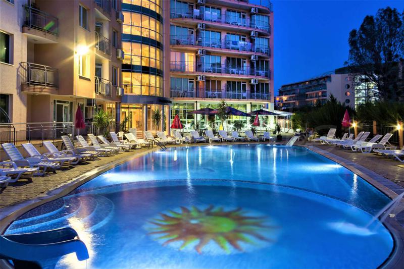 Hello, offer for sale a hotel with a swimming pool, gym and sports hall in the western part of the largest and most popular sea resort in Bulgaria — Sunny Beach.