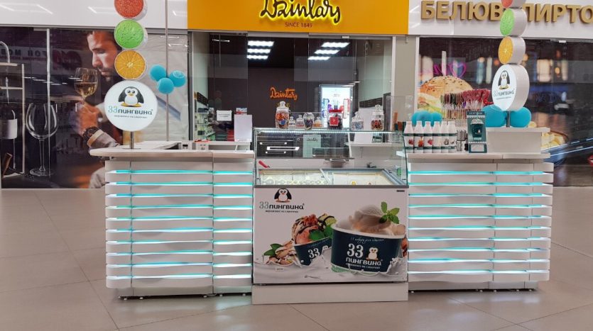Продается сеть розничной торговли по продаже мороженого торговой марки «33 пингвина» ,а так же кукурузы,сладостей и пирогов. Сеть включает в себя 12 торговых объектов,расположенных в разных частях города ,в местах оживленных с очень хорошей проходимостью. А именно по адресам: