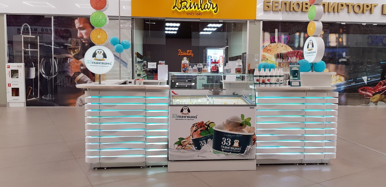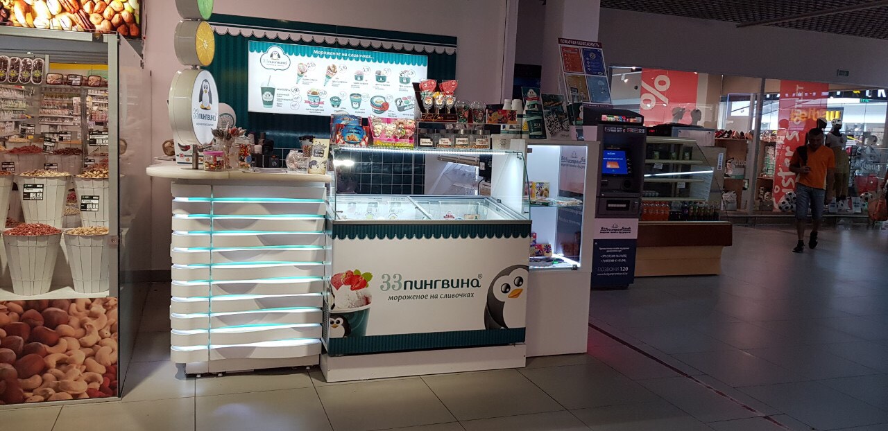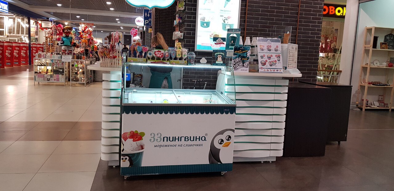 Продается сеть розничной торговли по продаже мороженого торговой марки «33 пингвина» ,а так же кукурузы,сладостей и пирогов. Сеть включает в себя 12 торговых объектов,расположенных в разных частях города ,в местах оживленных с очень хорошей проходимостью. А именно по адресам: