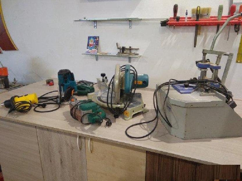 форматник, кромочник, углорез, фрезер, фрезер для радиусов, станок для рамочных профилей, дрели, лобзики и т.п. оборудование обслужено и настроено. помещение в аренде. зимой буржуйка, летом кондиционер. наработанная клиентская база, группа в ок, известный телефон. место «прикормленное» — 10 лет — рядом оптовая база стройматериалов (яндекс карта) и большой евпаторийский магазин-склад