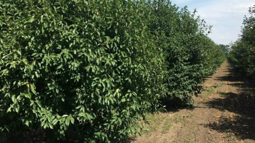 Посажены деревья : Черешня — 4000 деревьев + 1000 деревьев на подвое ВСЛ2 по системе UFO, поливная.
