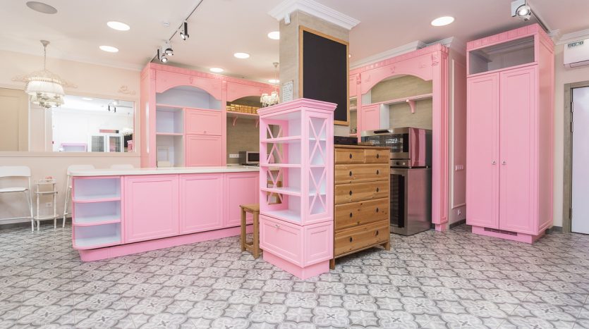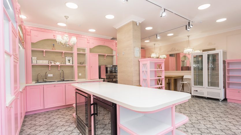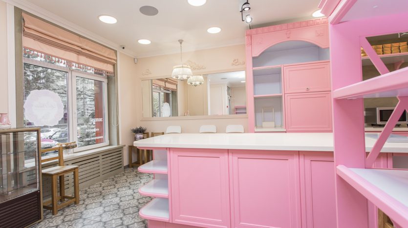 В России есть только одна Кондитерская Студия с профессиональным дизайном в стиле классической Французской Кондитерской. Здесь высококлассная дубовая мебель в благородном розовом цвете; итальянская плитка; авторские шторы, профессиональное освещение и музыкальная система.