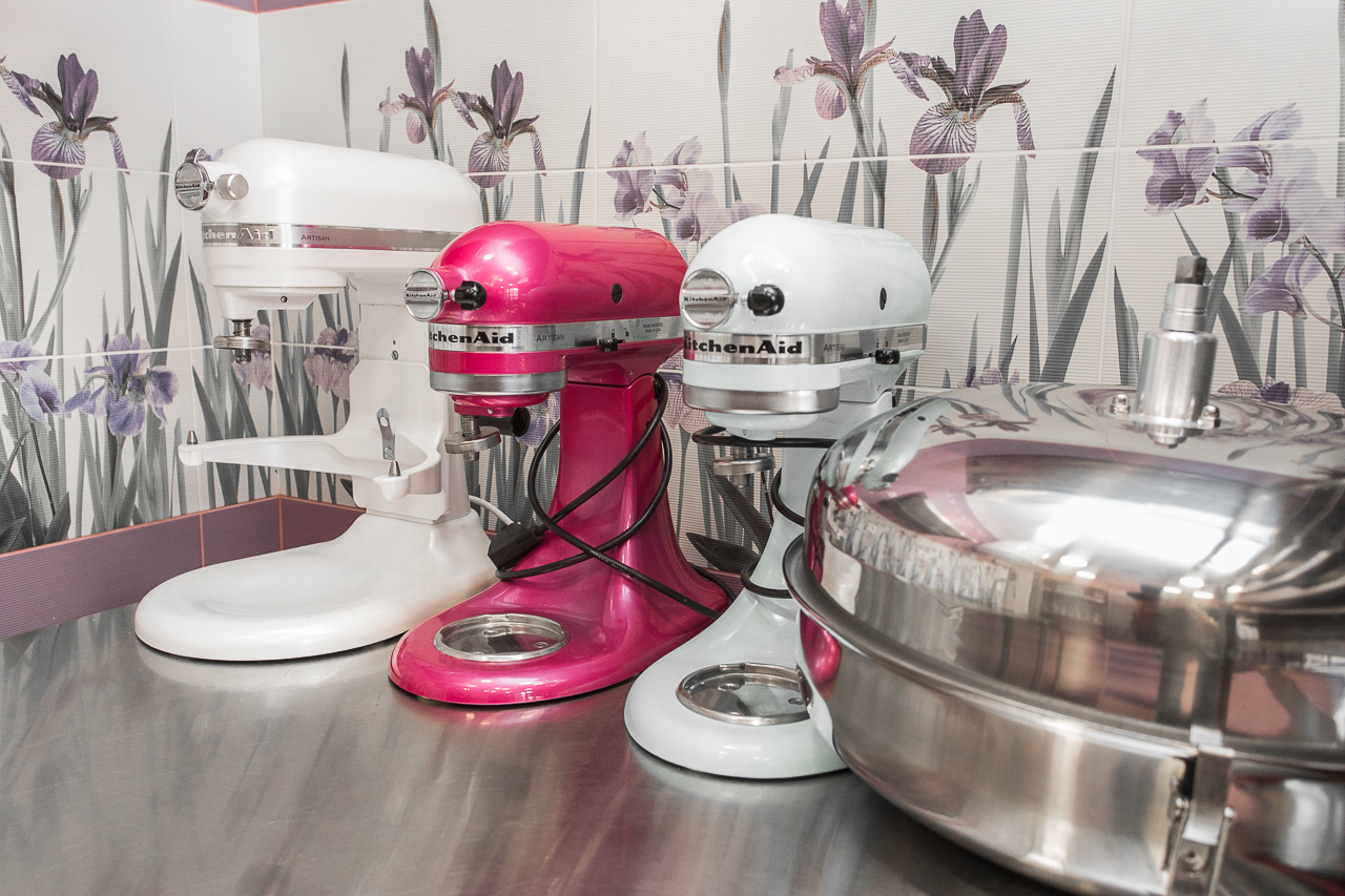 Комплект включает и специальную технику, которой нет в других кондитерских Новосибирска. Например, холодильник шоковой заморозки итальянской фирмы Apach. Он необходим для приготовления большинства муссовых тортов и пирожных.