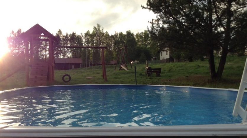 вйбольная площадка, и мини-ферма! Стоянка на территории на 10 машин. Летняя беседка на 15 человек. Площадка для барбекю и приготовления пищи на огне с мангалом. Украшения участка: газон, декоративные дорожки, лесные и декоративные деревья. Отдых на лоне девственной природы с полным современным комфортом! Расположена на участке, с прекрасной комнатой отдыха на 10 человек с душем, парилка на 6 человек. Открытый летний бассейн: глубина 1,35 метра, площадь 30 кв. м.