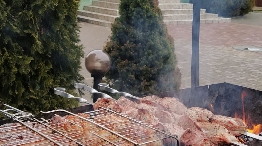 На первом этаже располагается кафе на 40 посадочных мест, производственный цех, топочная (возможна установка котла под тв. топливо) два санузла, мангальная со стационарной постройкой 3в1 и терасса.