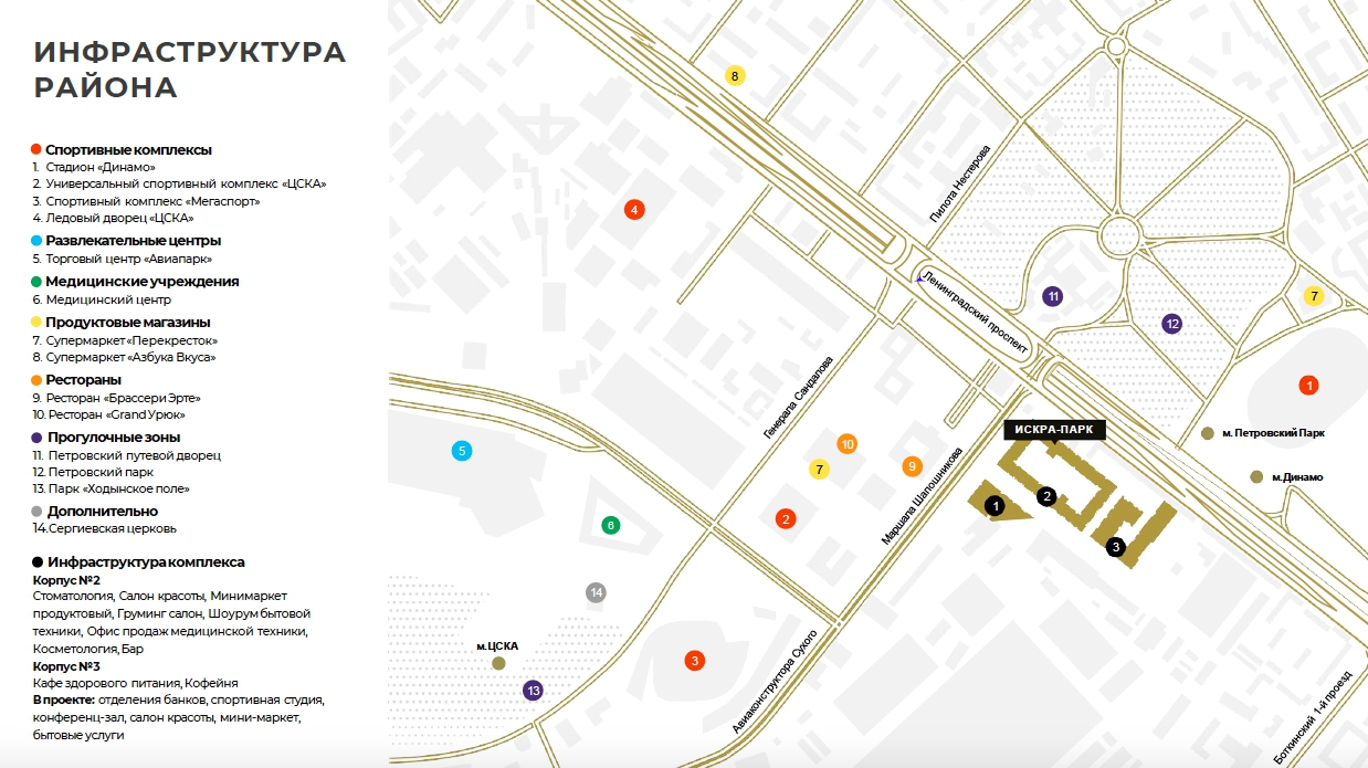 Апартаменты Бизнес класса, находятся в 6 минутах от метро и на ходынском поле — большой трафик на спортивные мероприятия и рабочим вопросам, потому что рядом стадион ЦСКА и Динамо, Москомспорт и Mail group.