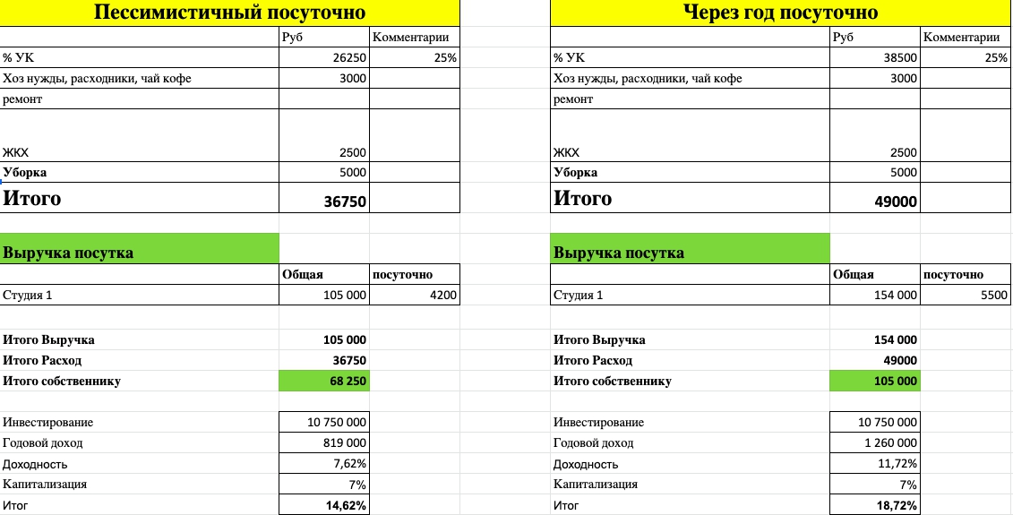 Делаем ремонт, формируем посуточную загрузку и дальше получаем прибыль. ВАЖНО: используем такие инструменты, как Booking и Airbnb на аккаунте инвестора, вся прибыль приходит инвестору напрямую, дальше делим прибыль, как договоримся с результата.