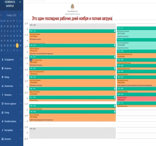 В месяц у нас 300-450 клиентов — это только половина загрузки (смотрите фото расписания).