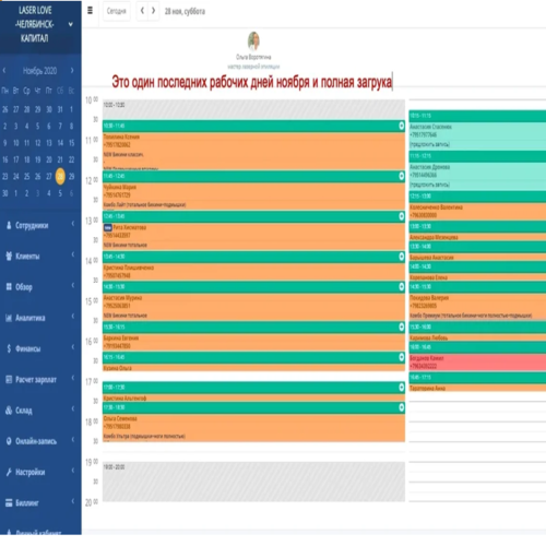 В месяц у нас 300-450 клиентов — это только половина загрузки (смотрите фото расписания).