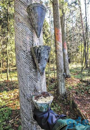 в работе 160 Га, 58000 шт. приёмного оборудования живицы