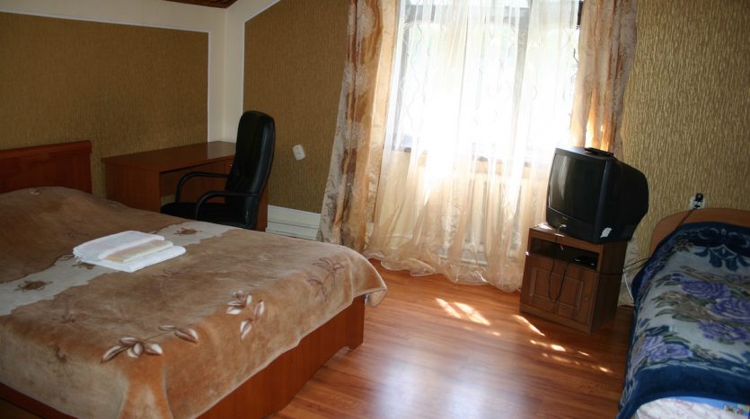 3-х эт коттедж в парковой зоне с мебелью, оборудованием, спальными принадлежностями и пр. Готов для продолжения бизнеса посуточного найма. Всего 9 комнат, в каждом комнате собственный санузел (сантехника новая). Каминная 42 квм имеет отдельный вход. Две кухни и столовая на первом этаже. Отопление индивидуальное. Продается вместе с 1-комн домиком с собственной кухней и санузлом. Д вор 7 соток, сад, беседка, терраса. Гостевой дом пользуется большим спросом среди спортсменов и приезжающих на отдых в Кисловодск – 700м ходьбы от парка, нарзанной галереи и пр. лечебных учреждений. Окупаемость 3-4 года..