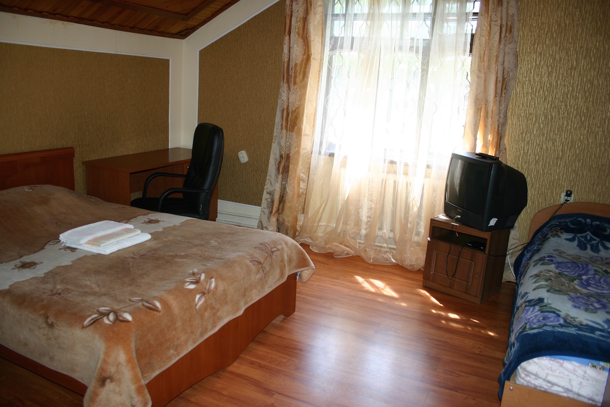 3-х эт коттедж в парковой зоне с мебелью, оборудованием, спальными принадлежностями и пр. Готов для продолжения бизнеса посуточного найма. Всего 9 комнат, в каждом комнате собственный санузел (сантехника новая). Каминная 42 квм имеет отдельный вход. Две кухни и столовая на первом этаже. Отопление индивидуальное. Продается вместе с 1-комн домиком с собственной кухней и санузлом. Д вор 7 соток, сад, беседка, терраса. Гостевой дом пользуется большим спросом среди спортсменов и приезжающих на отдых в Кисловодск – 700м ходьбы от парка, нарзанной галереи и пр. лечебных учреждений. Окупаемость 3-4 года..