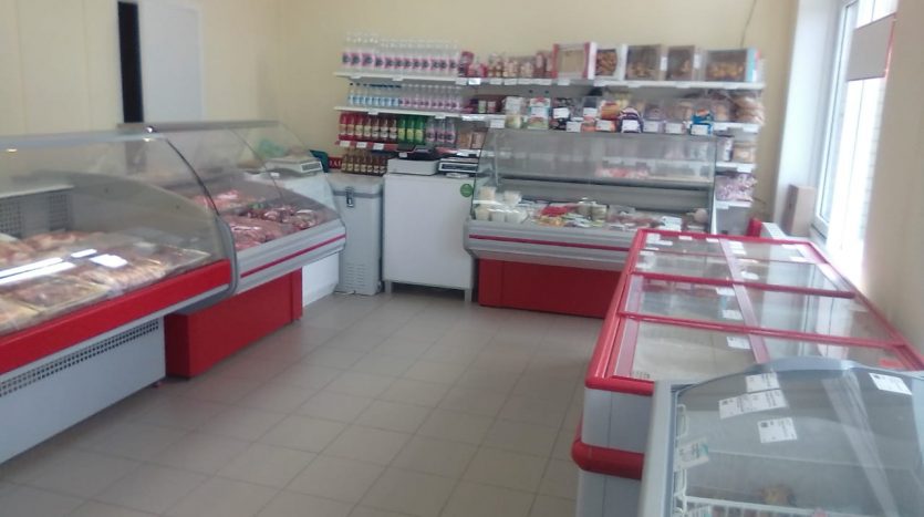 Оборудование: (среднетемпературная холодильная витрина – 3 штуки, низкотемпературная бонета на 16 корзин, низкотемпературный холодильный ларь – 3 штуки, стеллажи пристенные – 3,5 м.) и мебель передается новому собственнику. В стоимость включен товарный остаток.