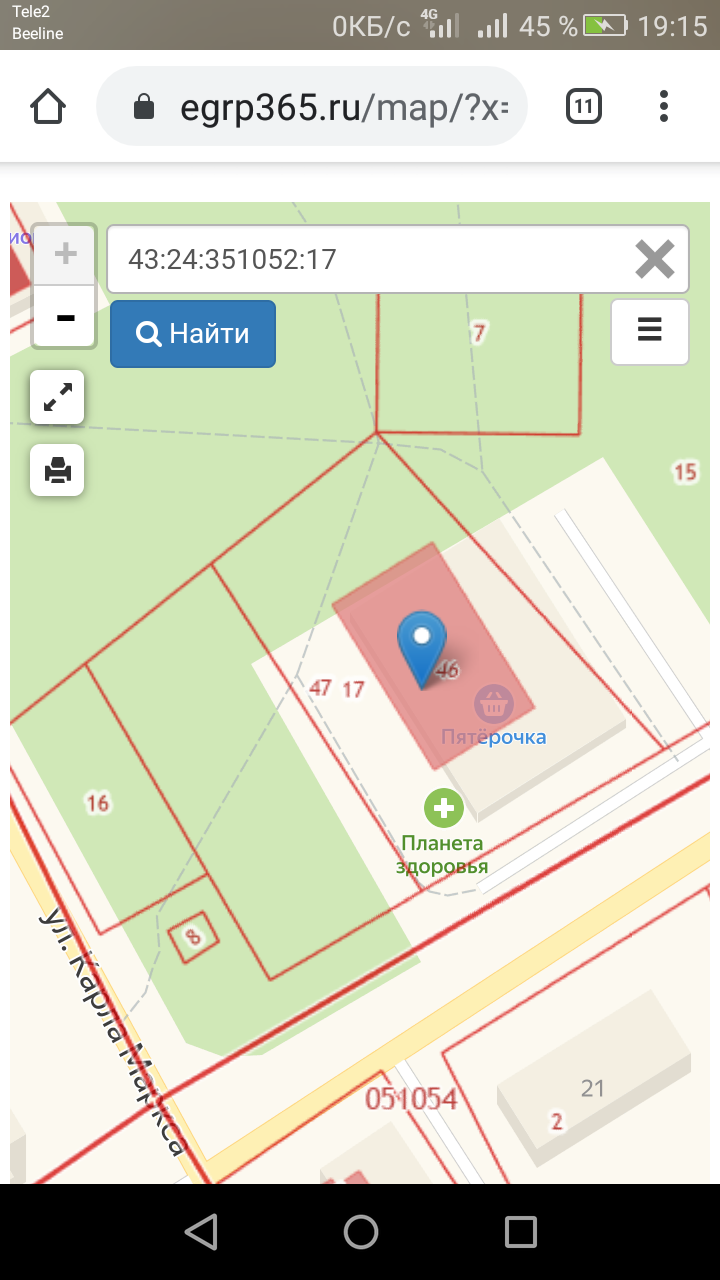 Кировская область, пгт Оричи, ул.8 Марта, 26а. Здание 2015 года постройки в собственности, фундамент — буронабивные сваи, железобетон, стены и перекрытия — сэндвич-панель. Земля 40 соток в долгосрочной аренде до 01.09.2063 (9863, 32 руб/квартал), размежевана на два участка, есть возможность построить ещё один объект. Арендатор здания — крупнейшая торговая сеть «Пятёрочка». Договор аренды до 2025 г., плата 4% отРТО, но не менее 216000 ежемесячно. Коммунальные услуги компенсируются по факту. Доход за последний год составил почти 3 млн рублей.