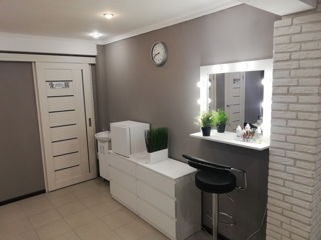 Салон (61 м2) имеет дизайнерский дорогой ремонт . Включает в себя 2 рабочих места мастеров по маникюру, отдельный кабинет для мастеров по наращиванию ресниц с двумя рабочими местами, и место —  бровиста/визажиста. Дополнительно, возможно, расположить еще пару рабочих мест, по желанию. Так же салон оснащен  новым НЕМЕЦКИМ солярием с минимальной отработкой ламп, который в сезон приносит хорошую прибыль.