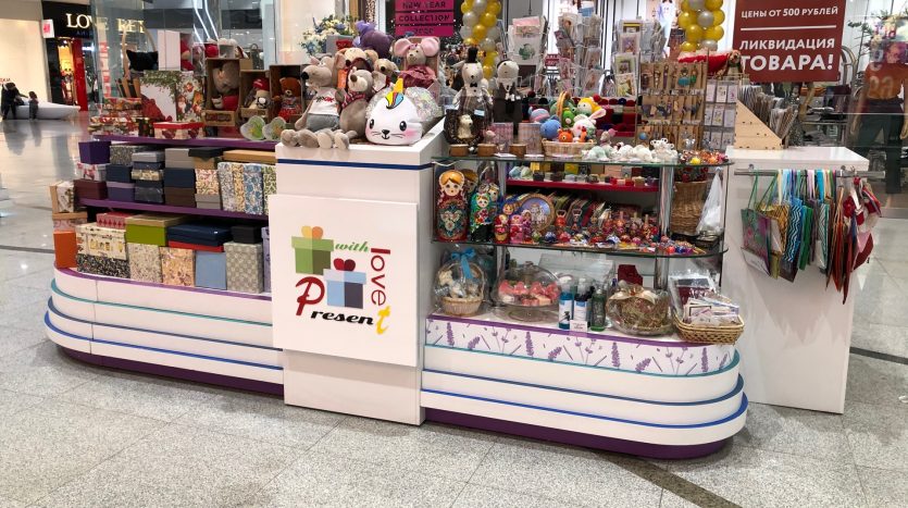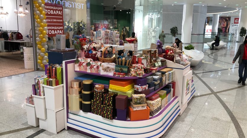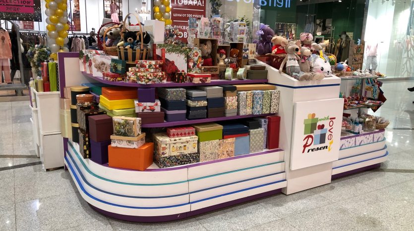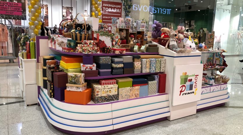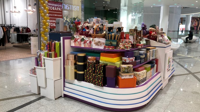 Остров профессиональной упаковки подарков в топовом торговом центре Москвы. Единственный в торговом центре!